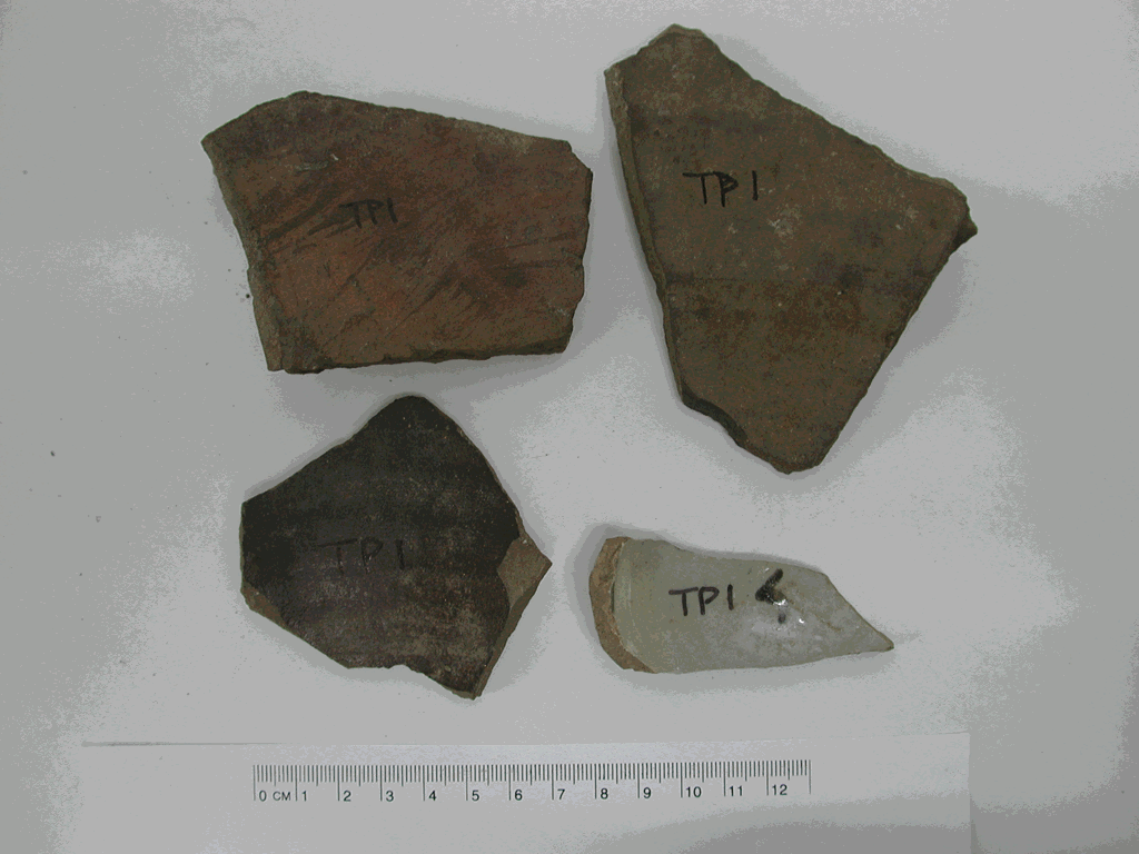 圖g. 東埔一鄰(TP1)遺址陶片及瓷器正面圖